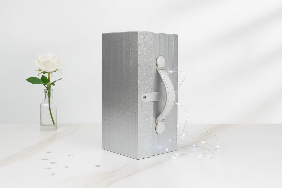 Folding Magnetic Bottle Gift Box With Leather Handle (Colors Available)