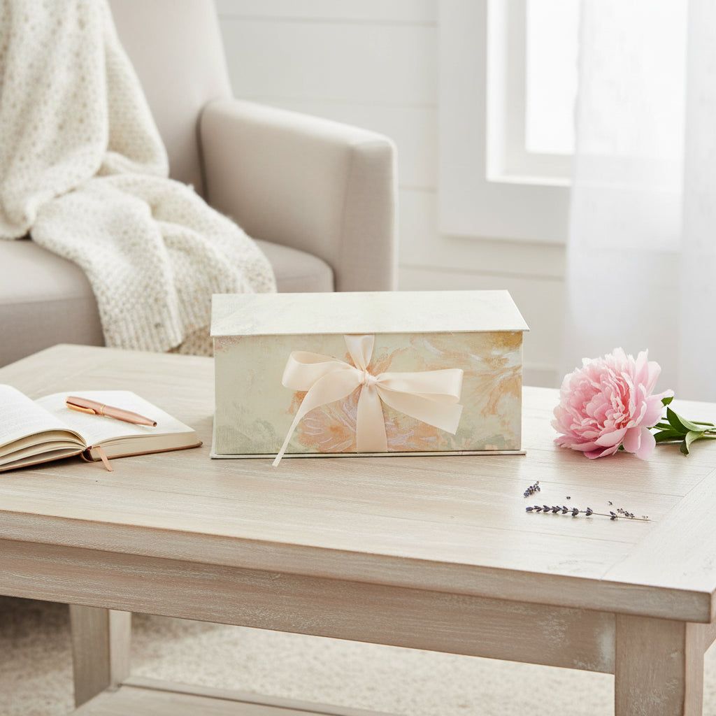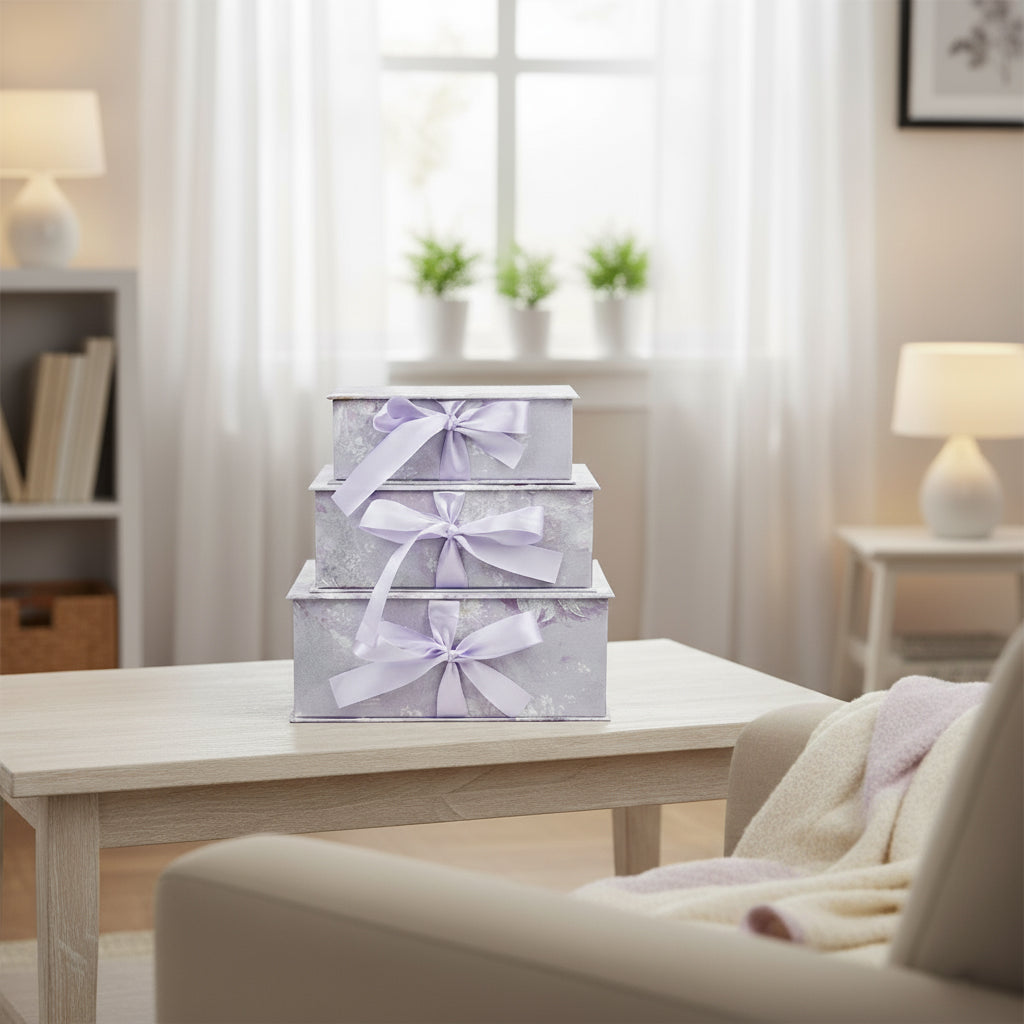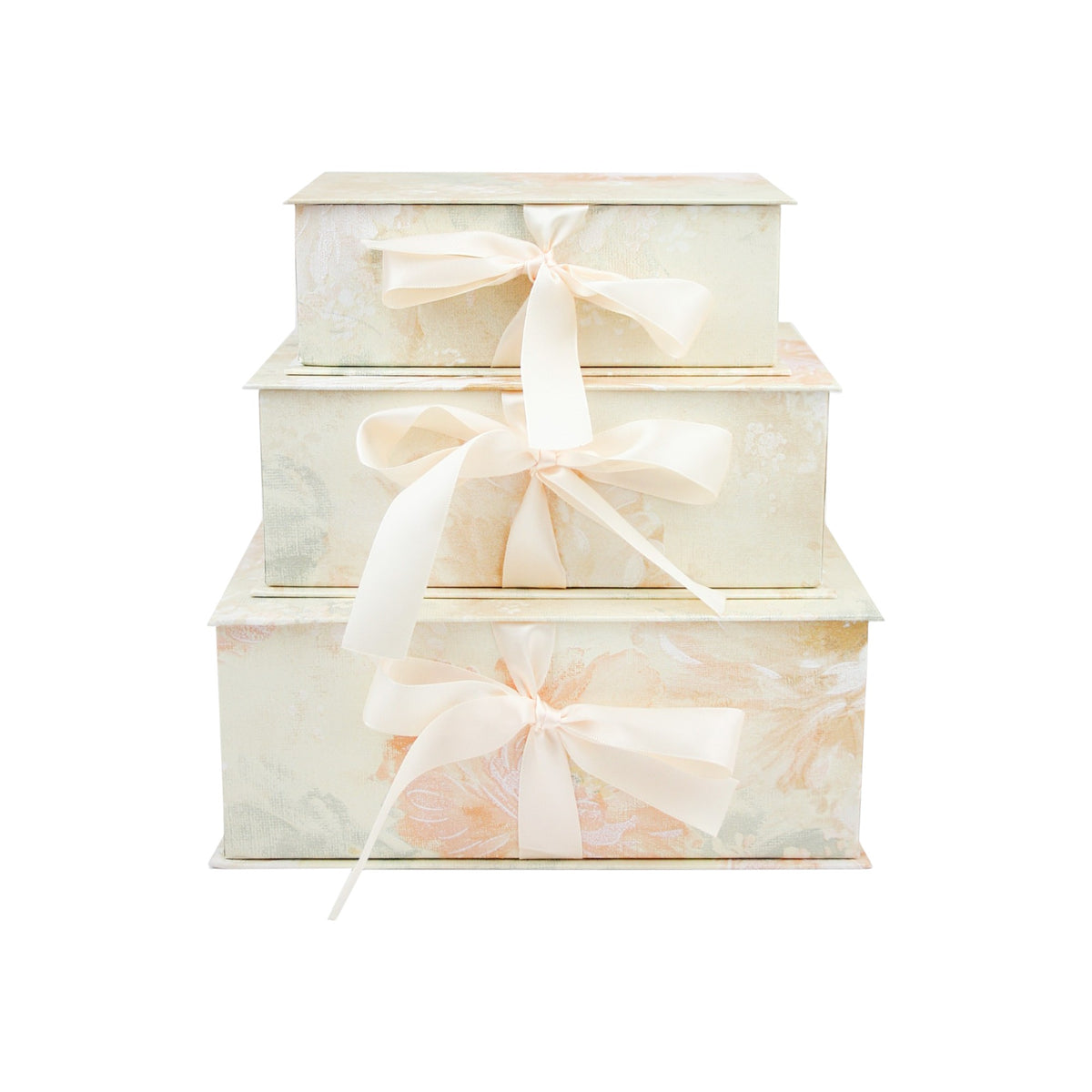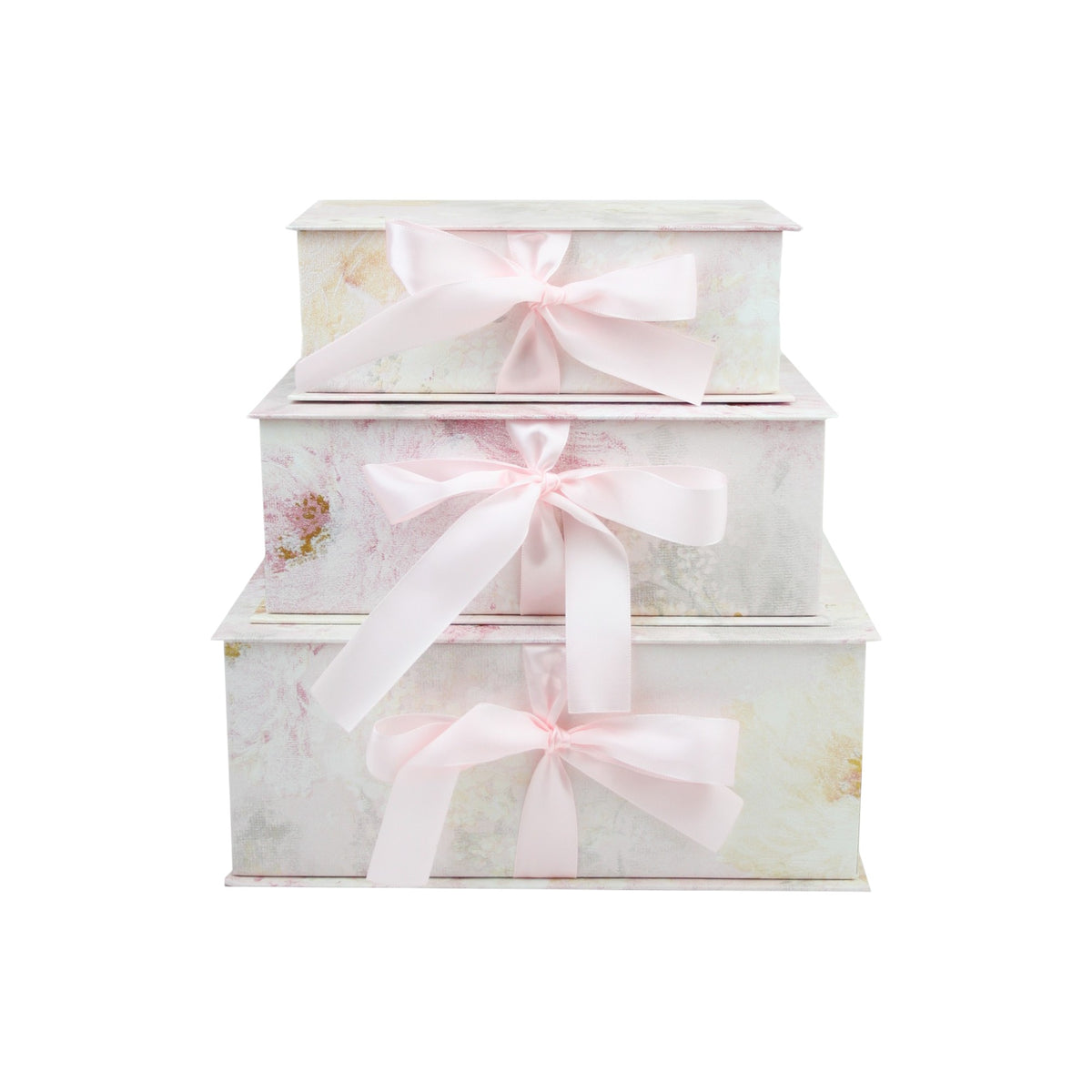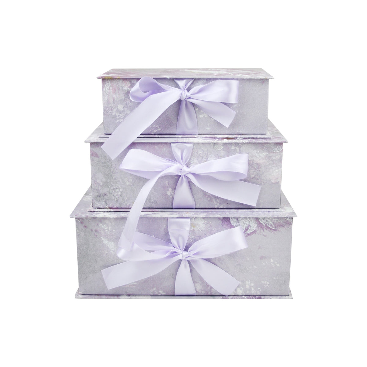 Textured Floral Gift Boxes With Ribbon - Set of 3 (Colors Available)