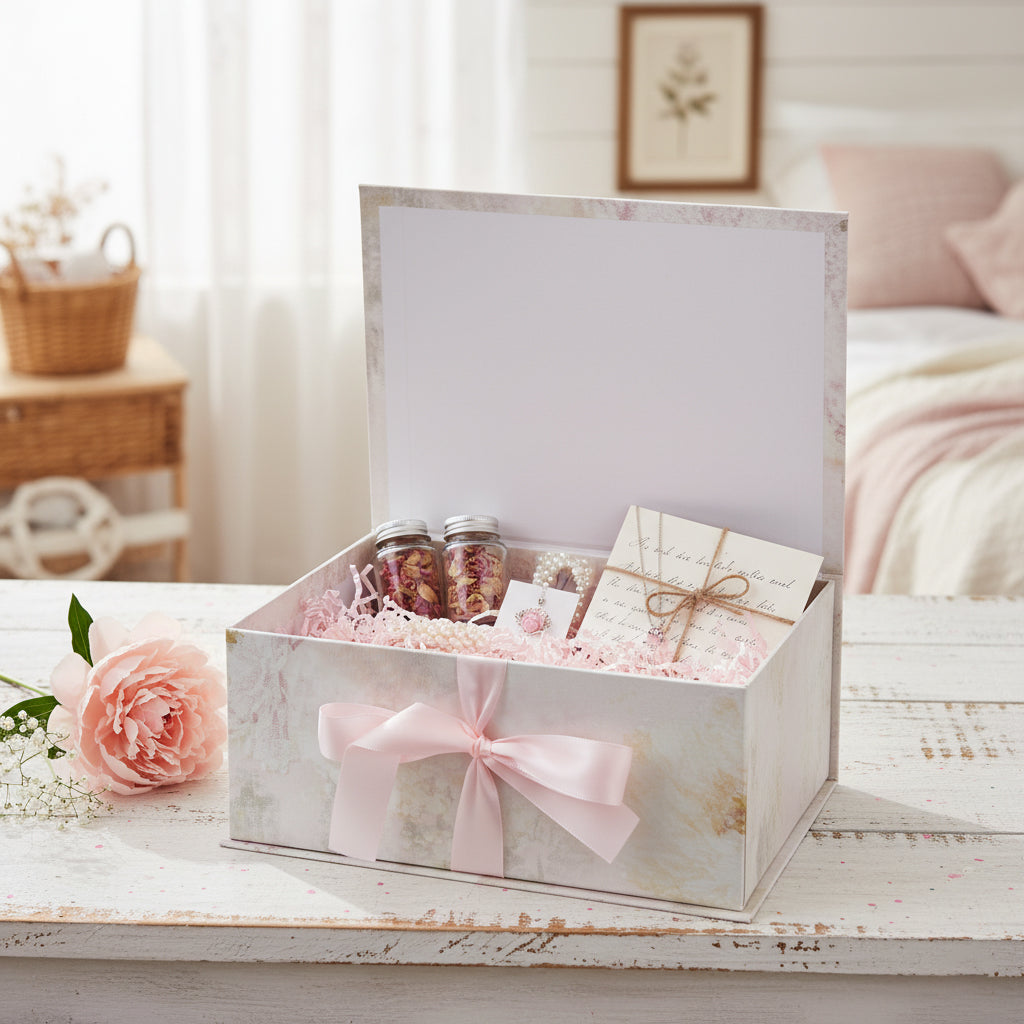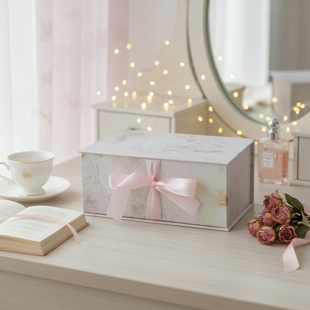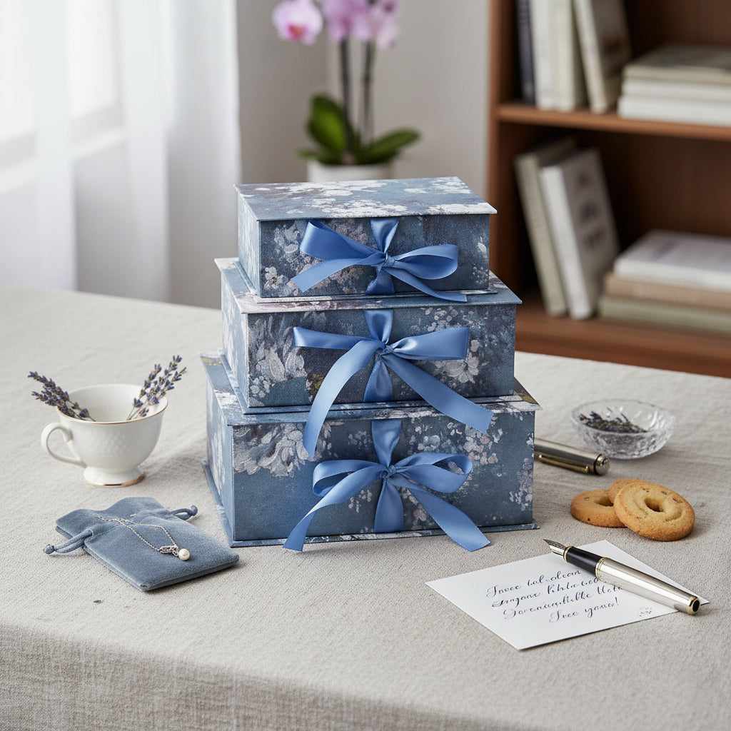 - π Elegant Floral Gift Boxes β Premium rigid boxes with delicate floral prints and satin ribbon closure for a luxurious touch.