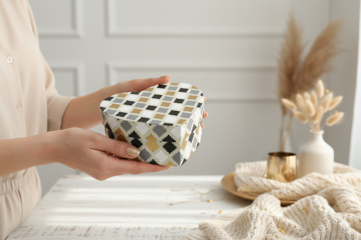- Handcrafted Elegance: Each box is meticulously handmade, featuring a stylish chequered pattern in vibrant colour, perfect for luxurious presentations.