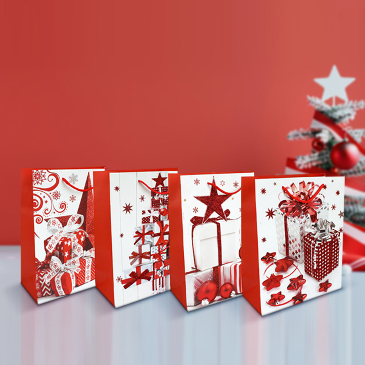 Festive Winter Christmas Gift Bags - Set Of 4 (Assorted Designs)