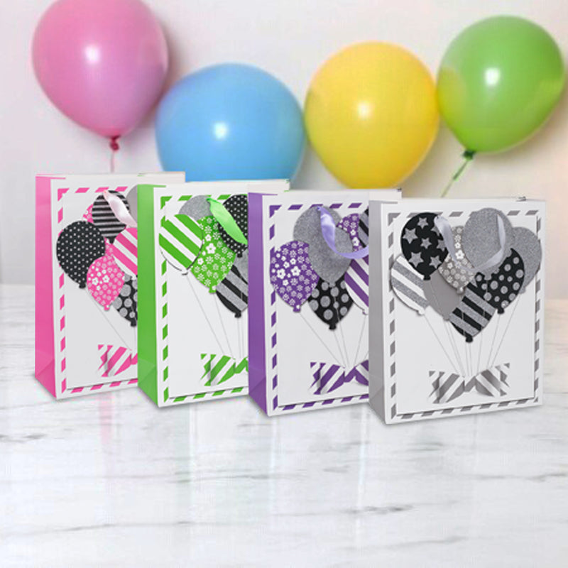 Glittery Heart Balloon Gift Bags - Set Of 4