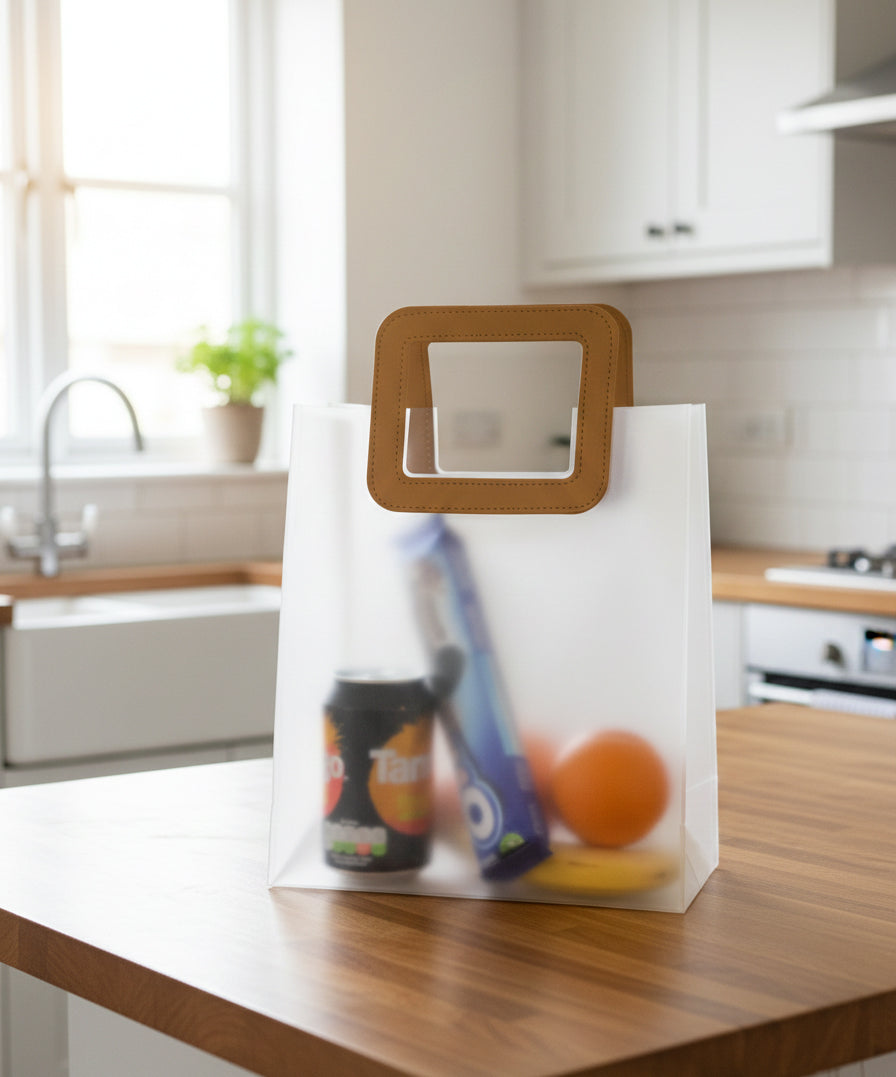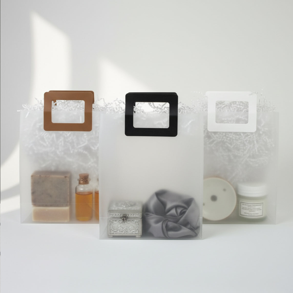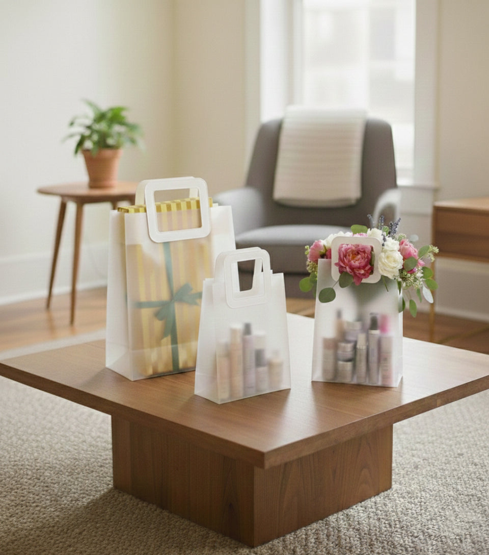 - Elegant Luxury Gift Bags – Sleek transparent PVC design with a modern square handle for a premium look.
