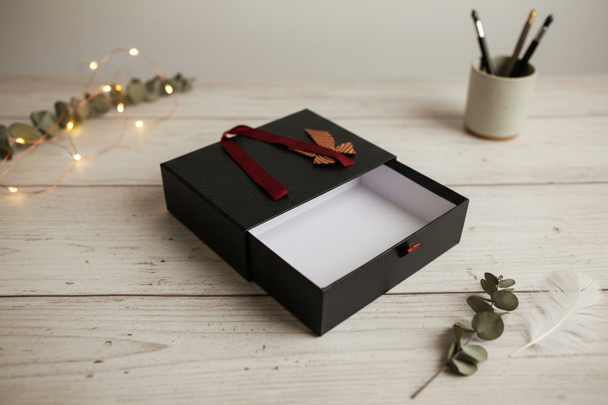 - Sophisticated Textured Design: Each box features an enhanced black textured print, offering a luxurious and contemporary look.