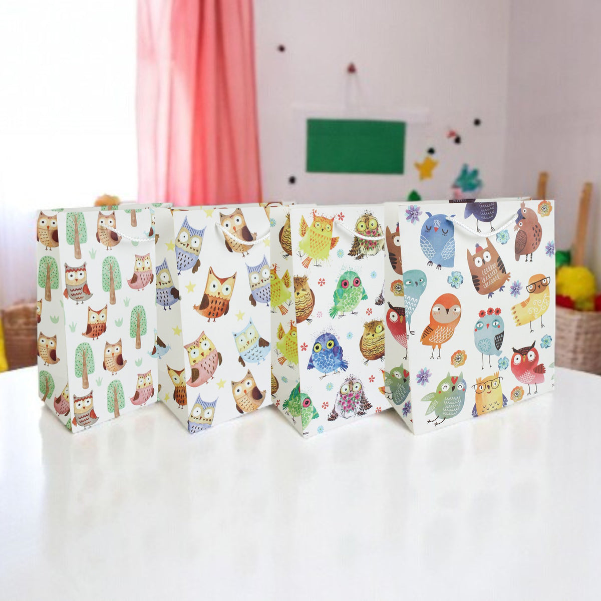 Multicoloured Owls Gift Bags - Set Of 4 Assorted Designs