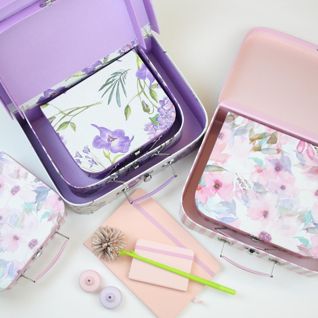 Elegant Lilac Floral Suitcase Style Gift Boxes - Set of 3