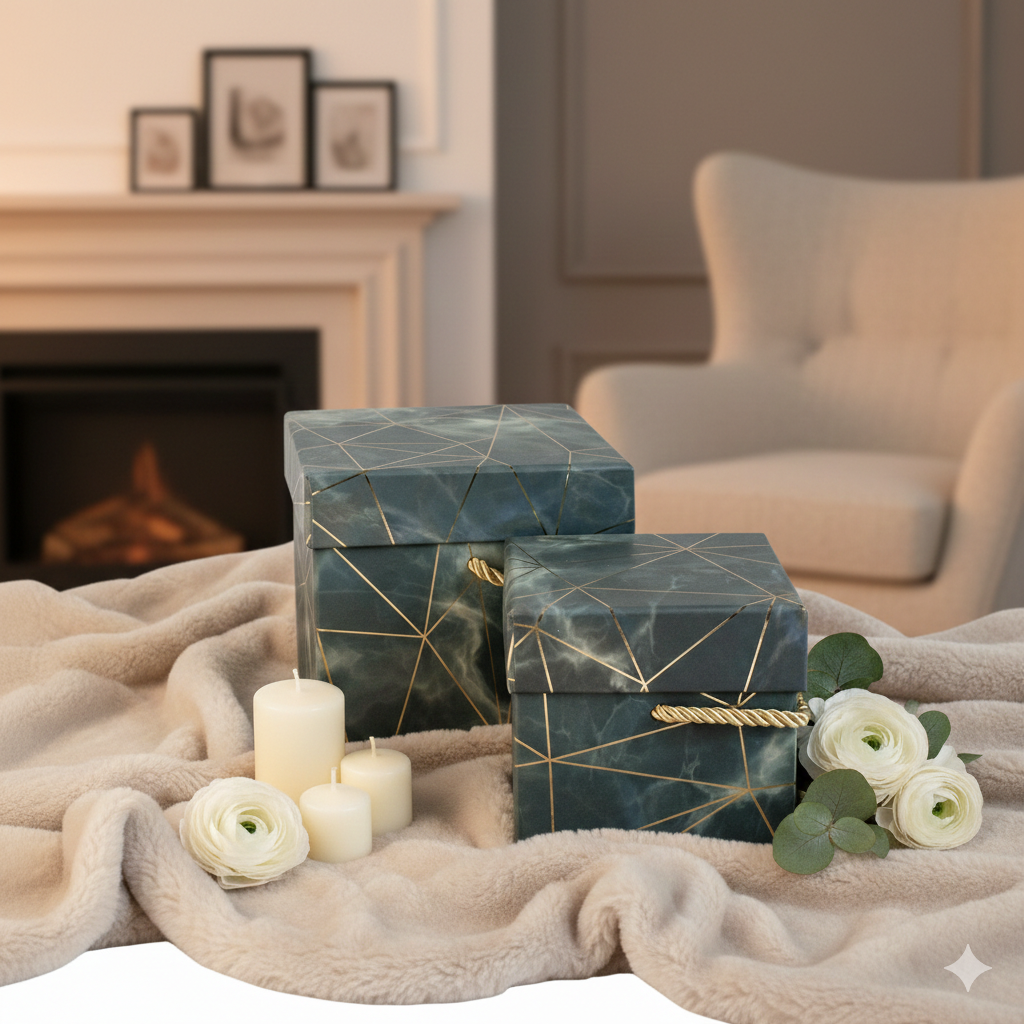Elegant Marble Patterned Gift Boxes - Set of 2