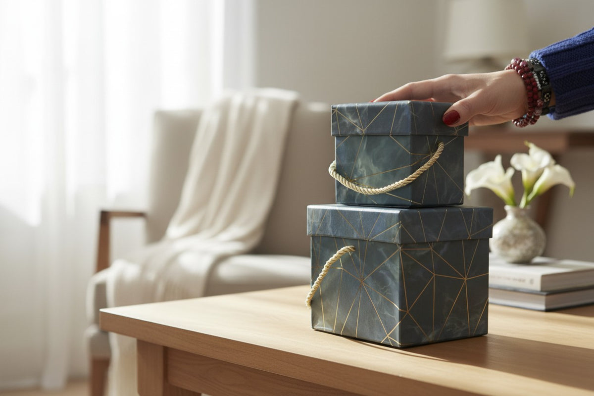 - Convenient Handles: Each box is equipped with a decorative rope handle for easy carrying and added elegance.