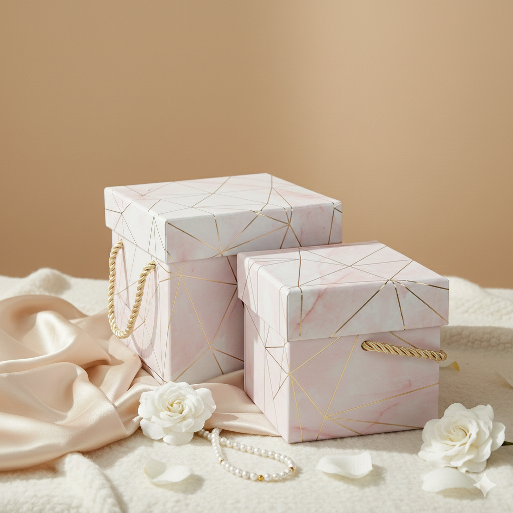 Elegant Marble Patterned Gift Boxes - Set of 2