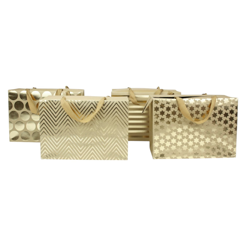 Gold Print Gift Bags - Pack of 12 (Sizes Available)
