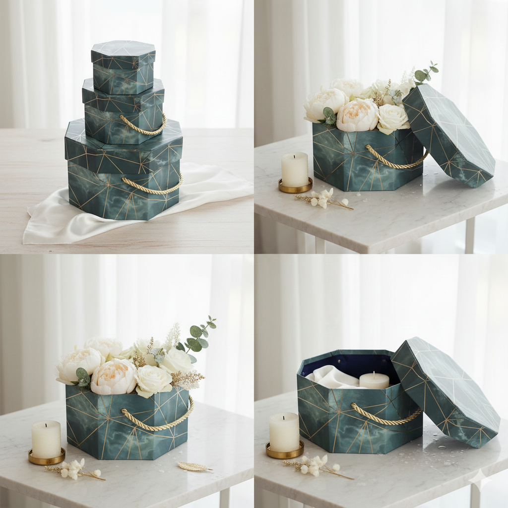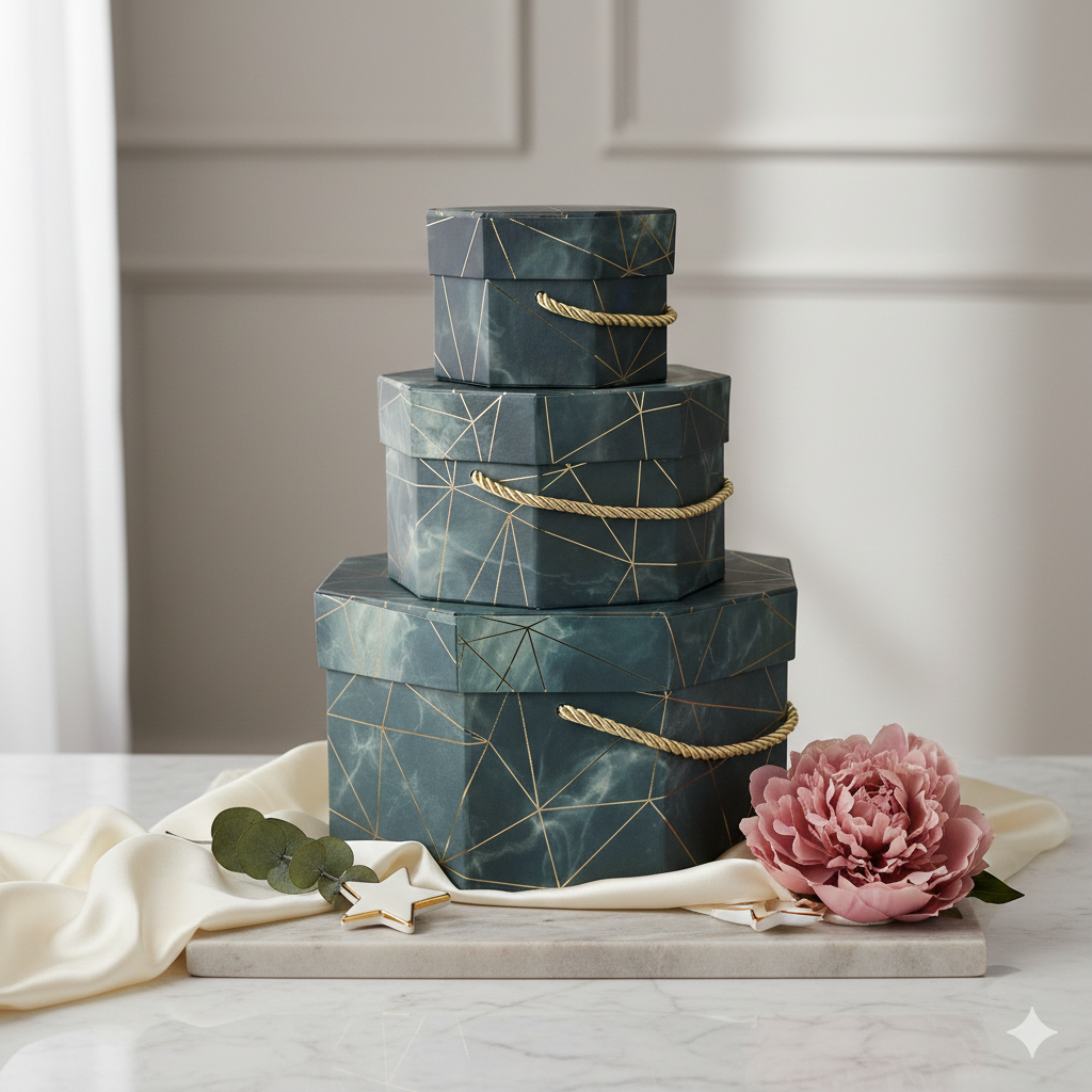 - Set of Three Versatile Boxes: Includes three hexagonal boxes, ideal for gifting a variety of items from clothing to accessories.