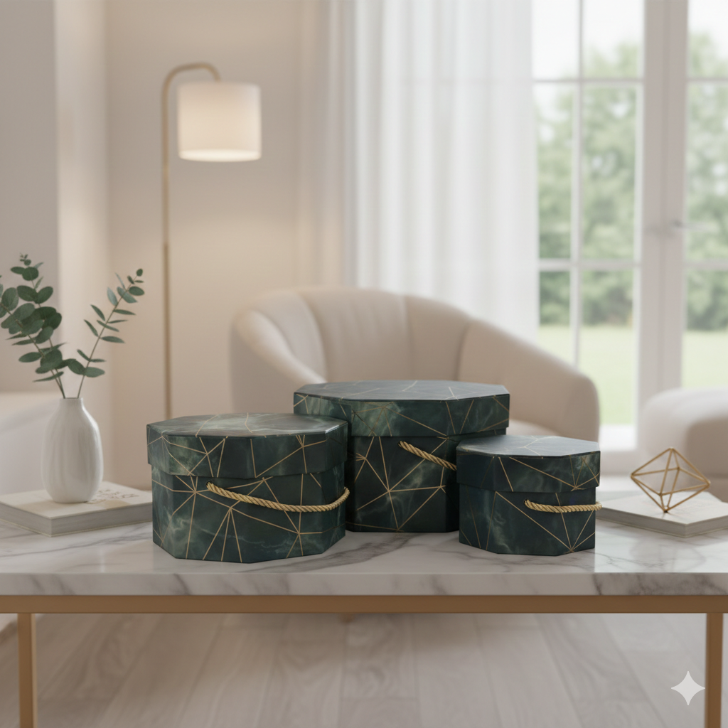 Chic Dark Grey Hexagonal Marble Patterned Gift Boxes - Set of 3