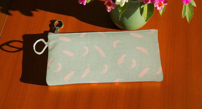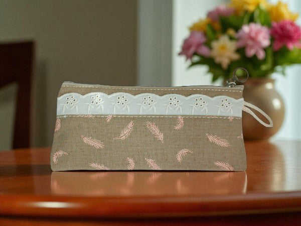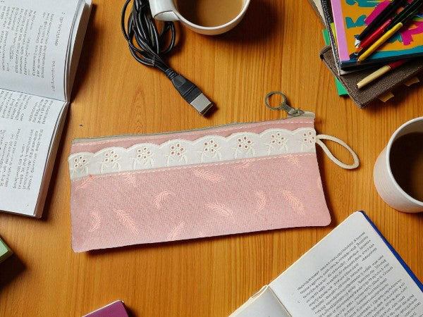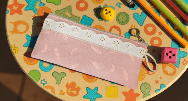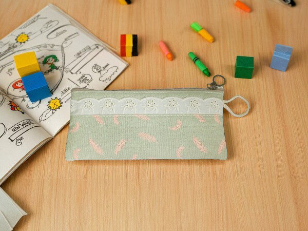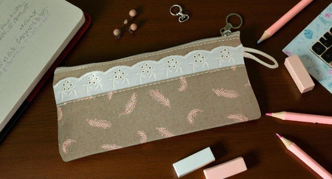 Elegant Feather Pencil Cases with Lace Trim - Assorted Colours