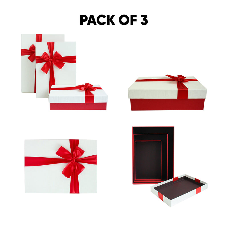Luxury Red/White Gift Boxes - Set of 3 (Sizes Available)