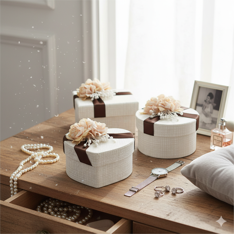 Elegant Cream/Red Gift Boxes - Set of 3 (Sizes Available)