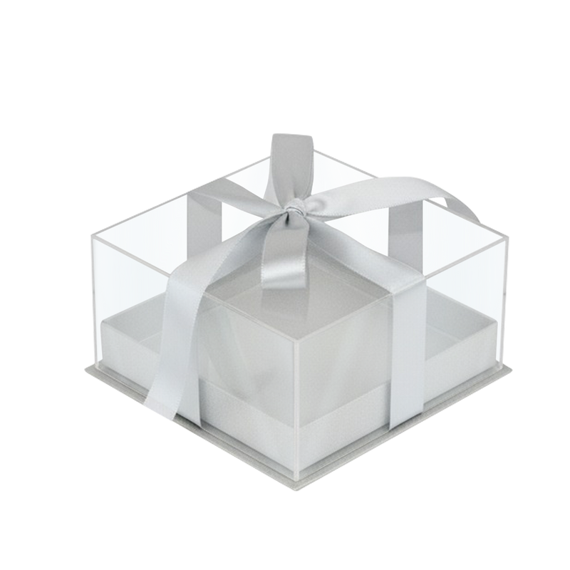 Acrylic Gift Box With Clear Lid and Ribbon (Sizes & Colors Available)