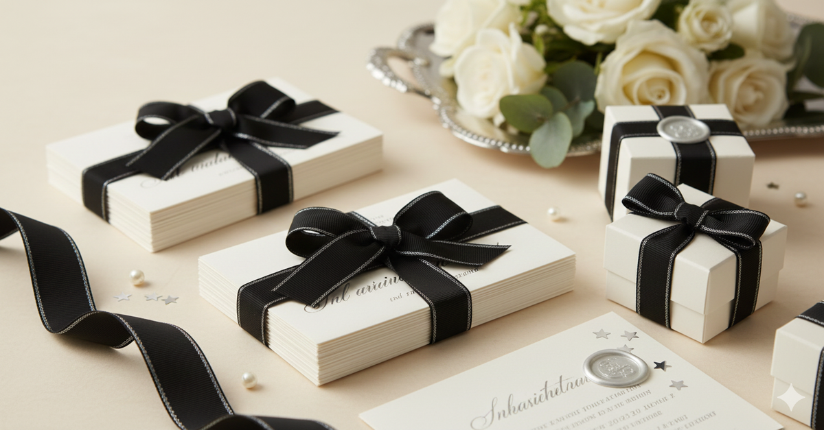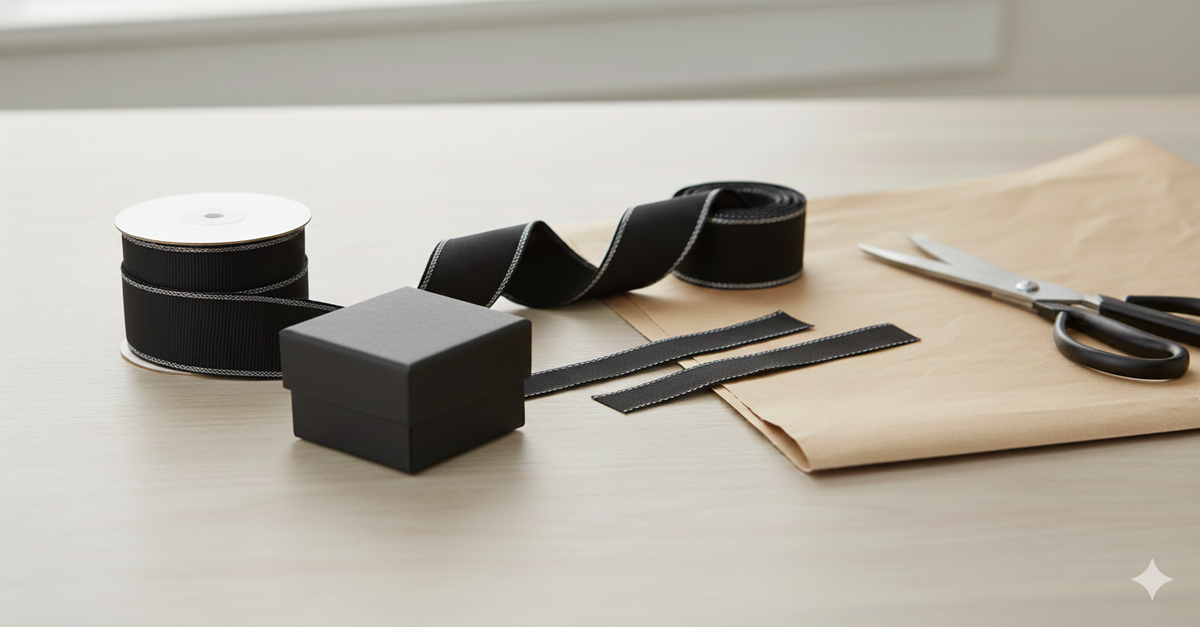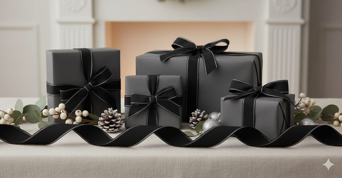 - Elegant Design: Features a classic black ribbon with stitched edges, adding a refined and stylish touch to any packaging or décor theme.