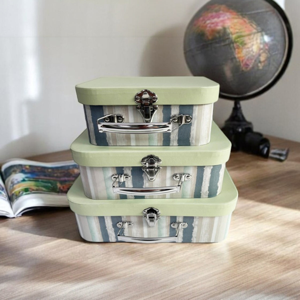 Elegant Multicoloured Stripes Window Suitcase Style Gift Boxes - Set of 3