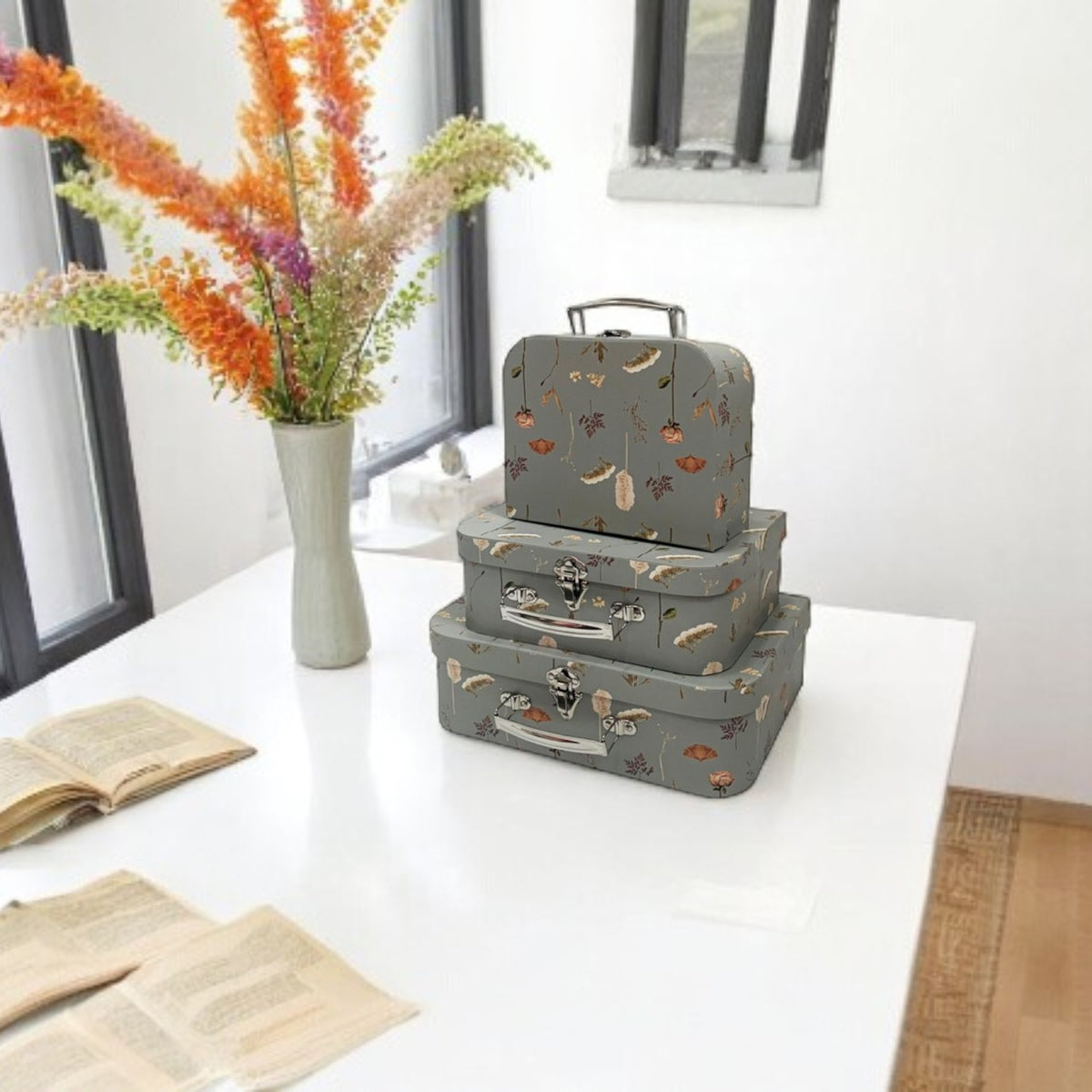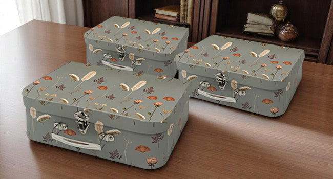 Elegant Pastel Green Flower Bouquet Suitcase Style Gift Boxes - Set of 3