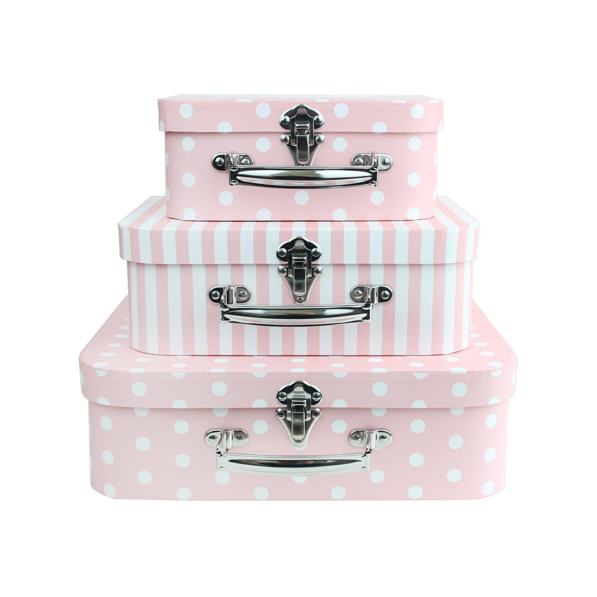 Elegant Pink Stripes & Polka Suitcase Style Gift Boxes - Set of 3
