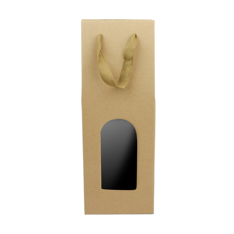 Kraft Bottle Gift Bag With Rope Handle and Window - Pack of 12 (Colors Available)