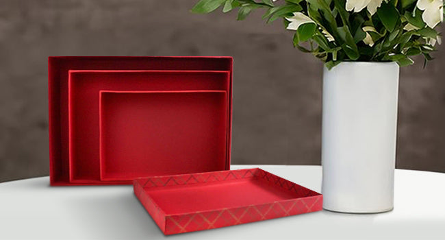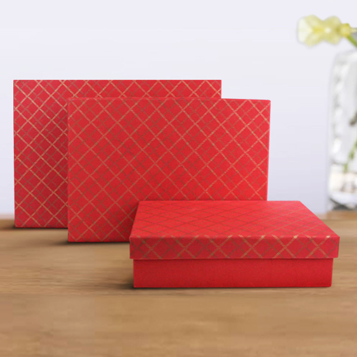 Handcrafted Chequered Red Gift Boxes - Set of 3 (Sizes Available)