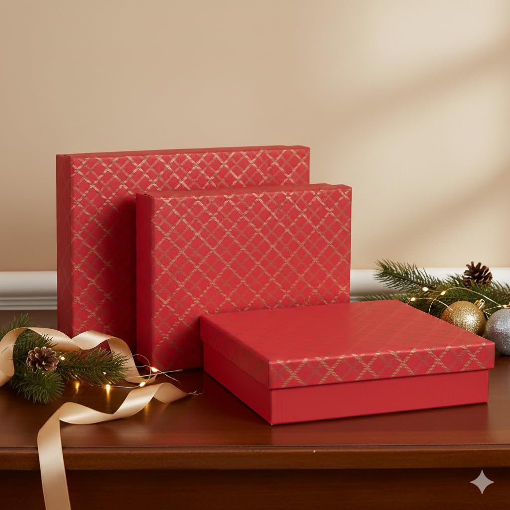 Handcrafted Chequered Red Gift Boxes - Set of 3 (Sizes Available)